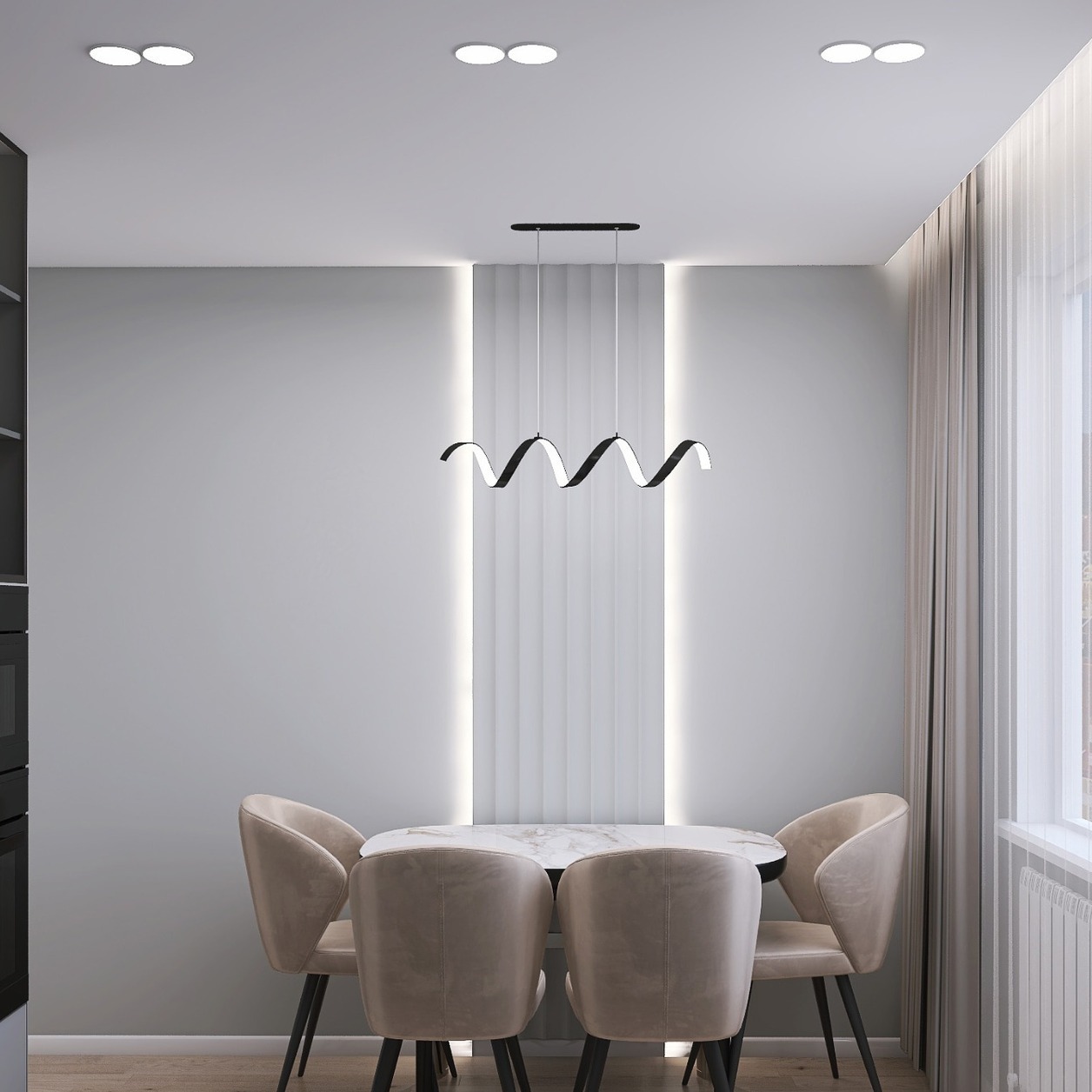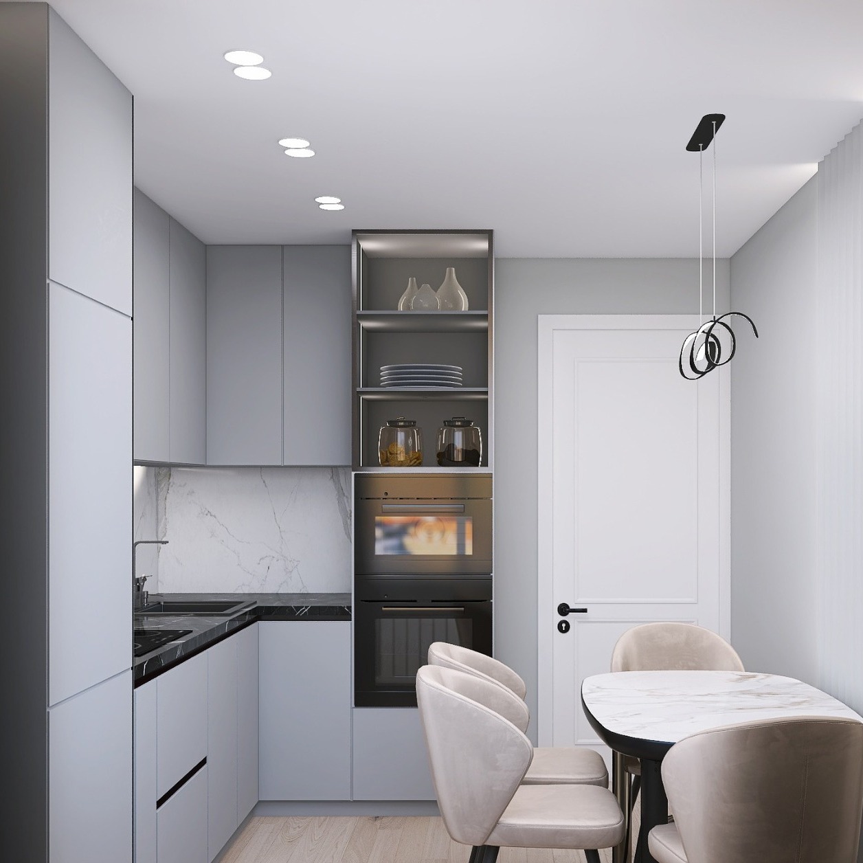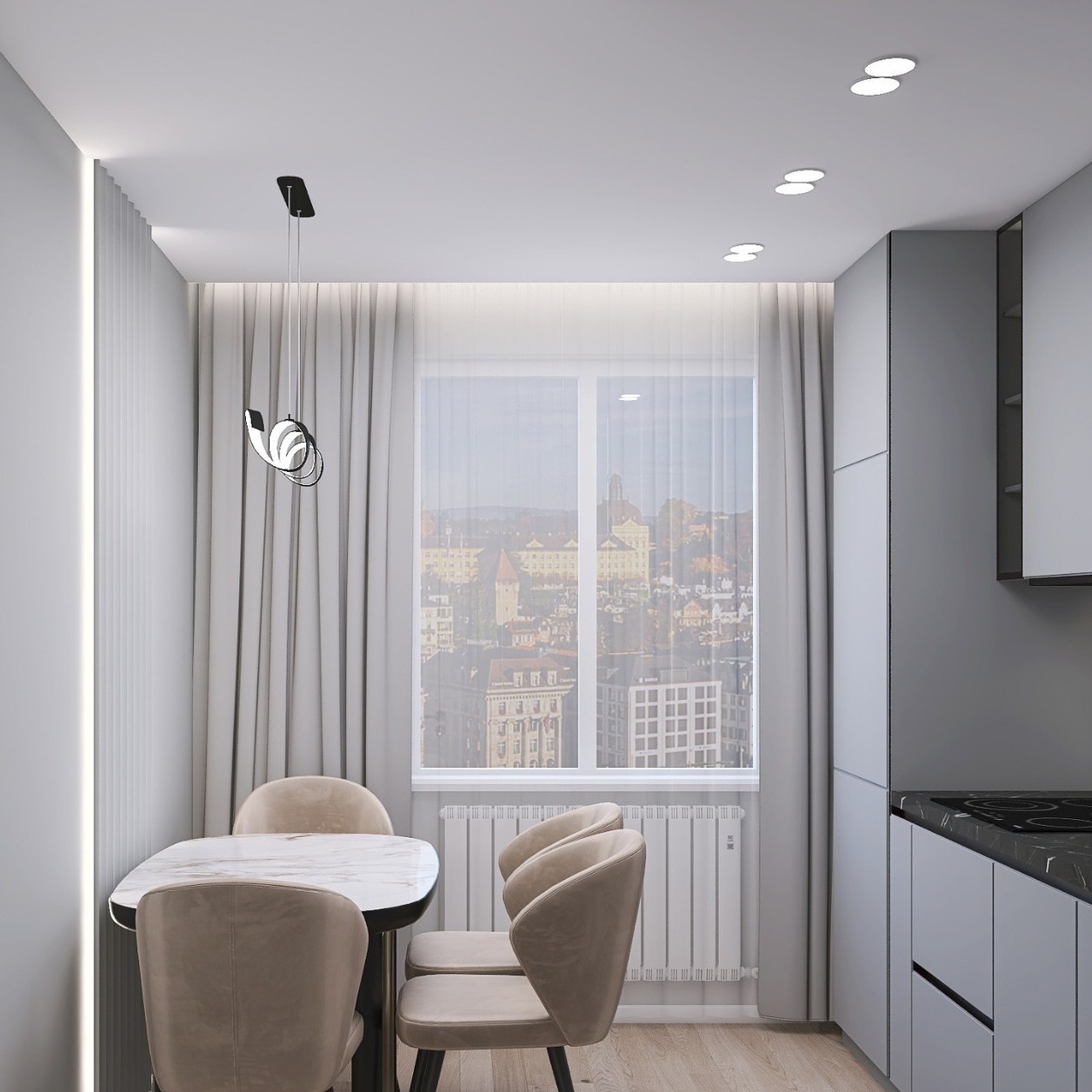 Кухонный гарнитур обладает достаточной вместительностью, чтобы разместить все необходимые кухонные приборы и посуду. При входе в комнату расположен телевизор слева, что позволяет максимально удобно наслаждаться любимыми фильмами и программами. Натяжные потолки с световыми линиями создают интересный и уютный световой эффект, дополняя общую атмосферу помещения. Таким образом, предоставленное описание подчеркивает сохранение стиля и гармонии в интерьере, а также предлагает множество комфортных и функциональных решений для вашего удобства.